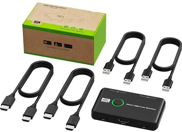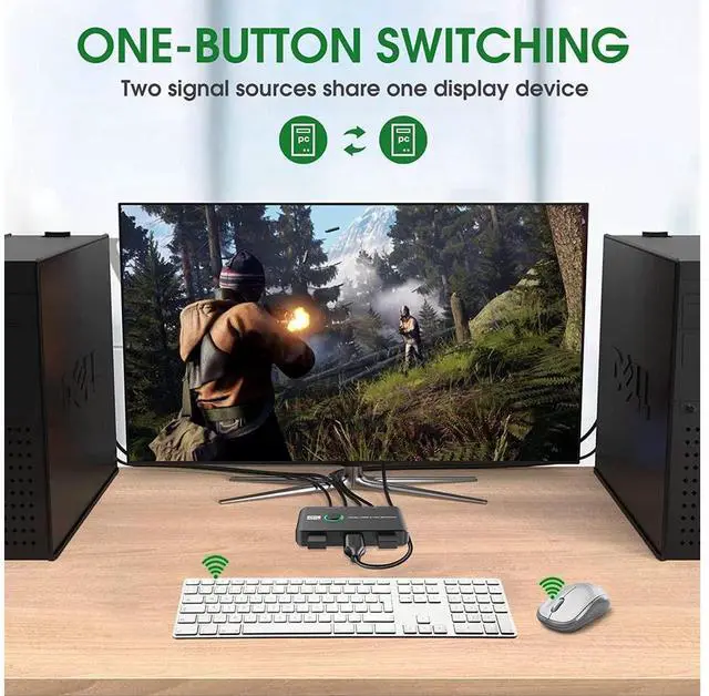 This HDMI KVM Switch can achieve two computers or laptops connected to a single monitor, furthermore two computers can share 2 USB 3.0 peripheral devices. s. It's a great accessory for a family, office or other workplace. You can share a single USB keyboard, USB mouse and HDMI monitor with both systems, saving space on your desk and using your prefered display, keyboard and mouse with both computers.