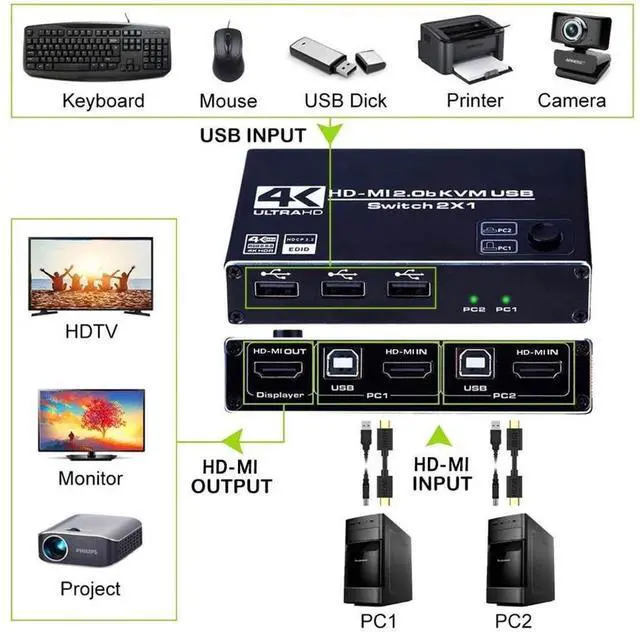 1. HD-MI KVM switch 4K@60hz, two hosts share a monitor and a mouse keyboard.