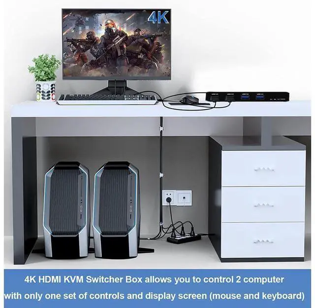 (2)the two devices share a printer, U disk, hard disk and other devices. The product supports 4K60Hz high-definition output, and has a wide range of application scenarios (such as office switching, video conferencing, multi teaching, securities finance, etc.), which can save office costs, convenient operation, plug and play.