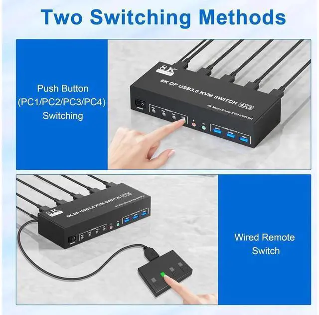 USB 3.0 Triple Monitor 3 DisplayPort KVM Switch for 4 Computers