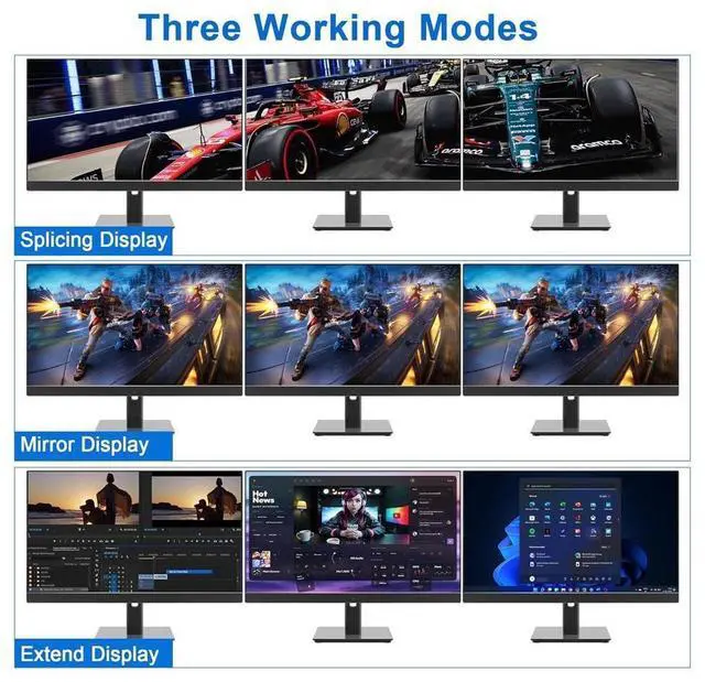 Triple monitors output support up to 4K@60Hz for extended and mirrored display