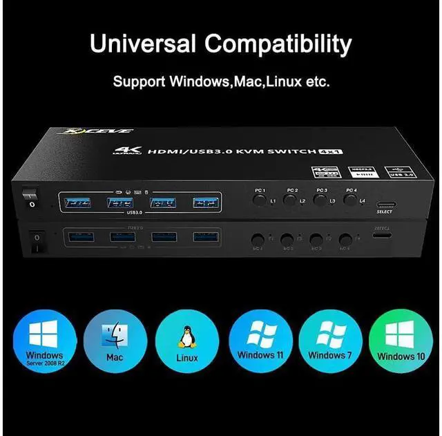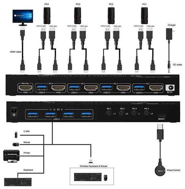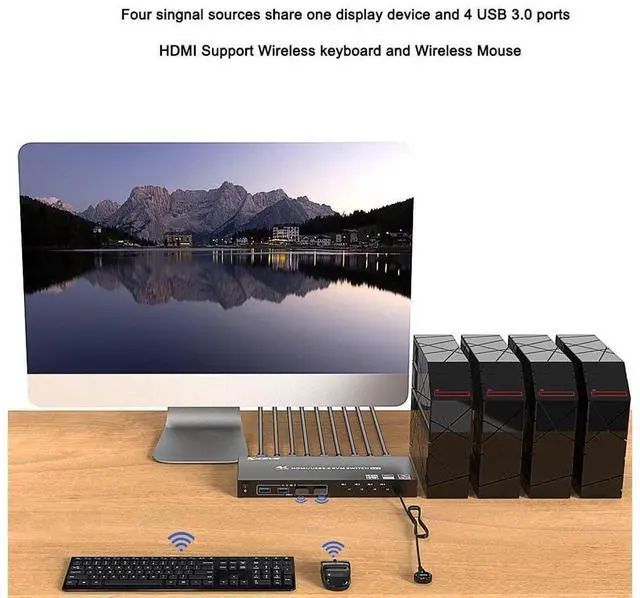 USB 3.0 HDMI KVM Switch is an excellent choice to share 4 USB 3.0 ports between 4 systems on 1 HD monitor. Allows you to share the mouse keyboard printer monitor with 4 computers. It is a great accessory for a family, office or other workplace.