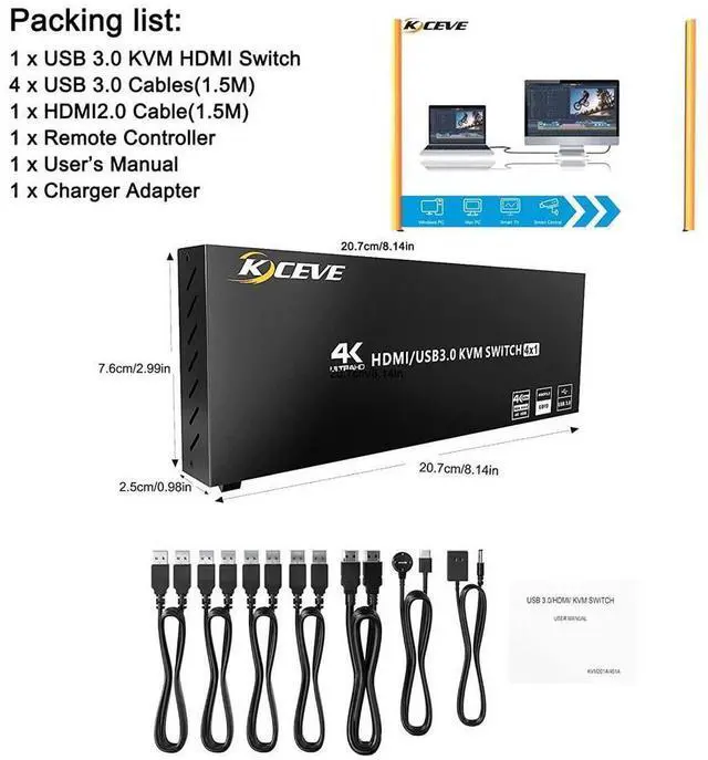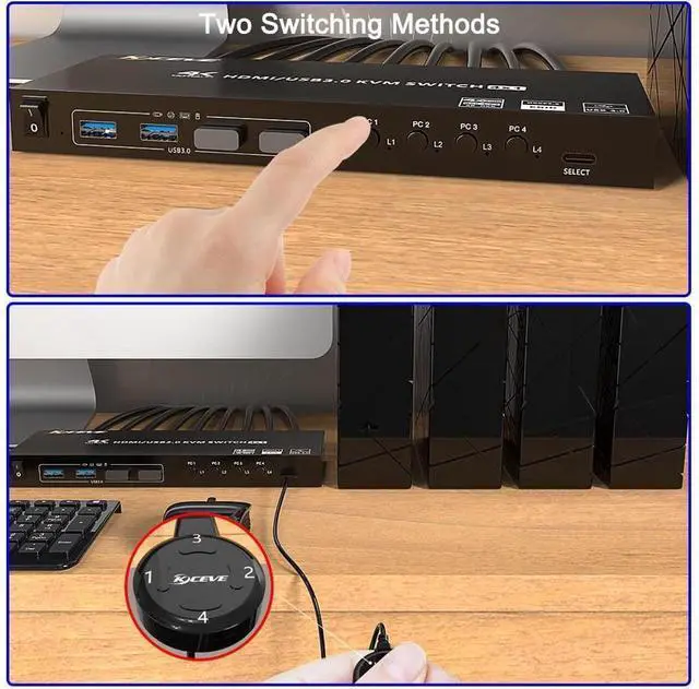 USB 3.0 KVM SWITCH allow 4 Computers/Laptops to share one set of Keyboard, Mouse and Monitor
