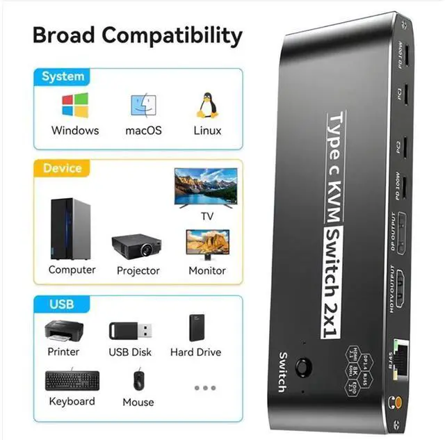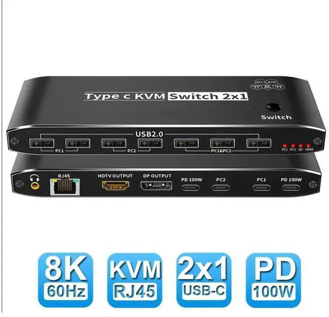 Thunderbolt 3 4 USB C KVM Switch RJ45 Network 4K 144Hz USB 2.0 KVM Switch USB 8K 60Hz 1080@165Hz USB KVM Switcher for Macbook Laptop