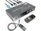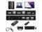 1 x kvm switch, 1 x desk controller, 1 x dc power cable, 1 x IR remote, 2 x type-B cable, 1x manual