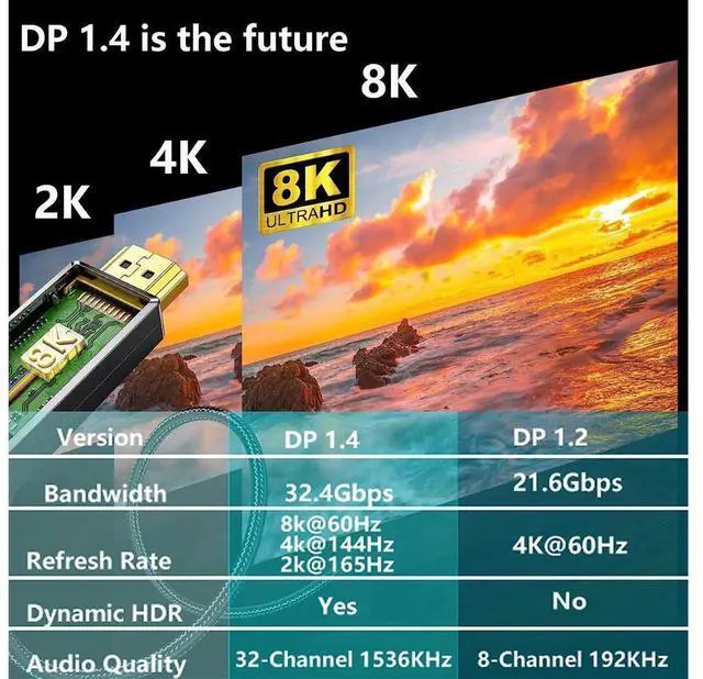 8K@60Hz - This DP 1.4 KVM Switch for 2 computers supports resolution up to 8k@60Hz(7680×4320)and backward compatible with lower resolution.