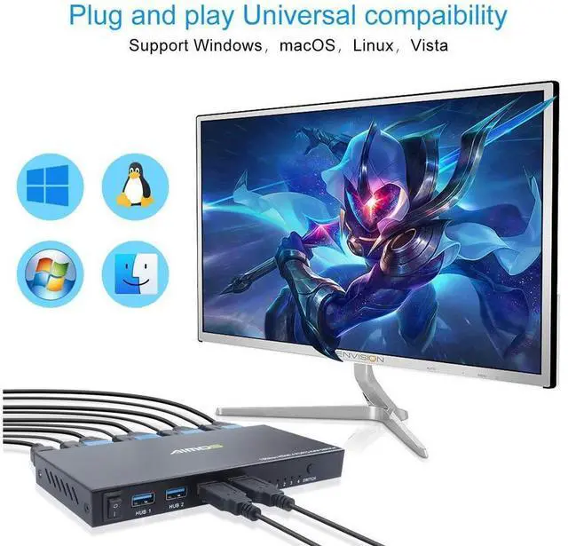 4K @ 60Hz HDMI USB KVM Switch with HDMI 2.0 and HDCP 2.2 compatibility