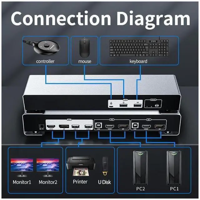 2x2 Dual Monitor KVM Switch (HDMI + DisplayPort)