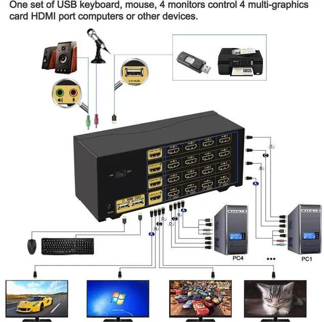 KVM for Mac KVM USB KVM HDMI Switch with USB Computer Monitor Switch 4 Port HDMI KVM 4 Port KVM Switch Monitor Keyboard Mouse Switch KVM 4 Port KVM Switch HDMI