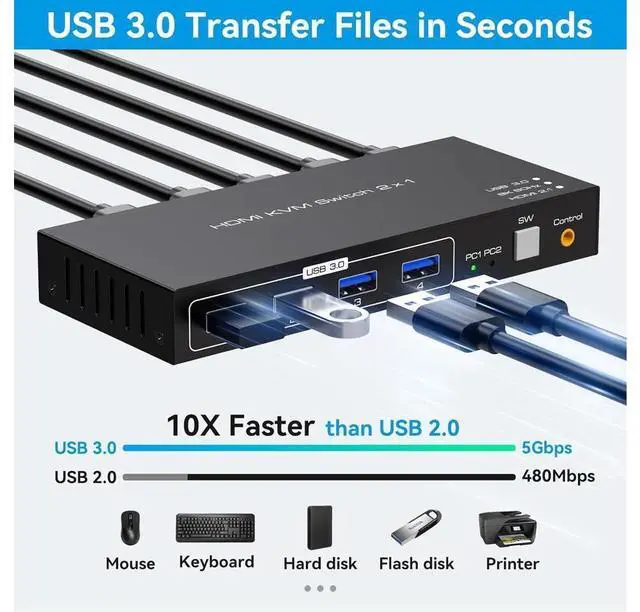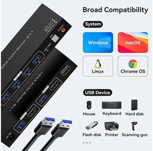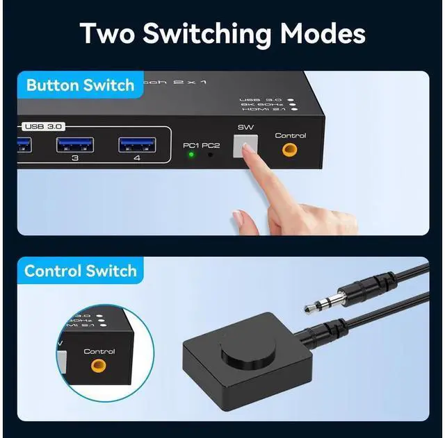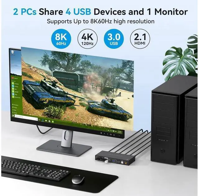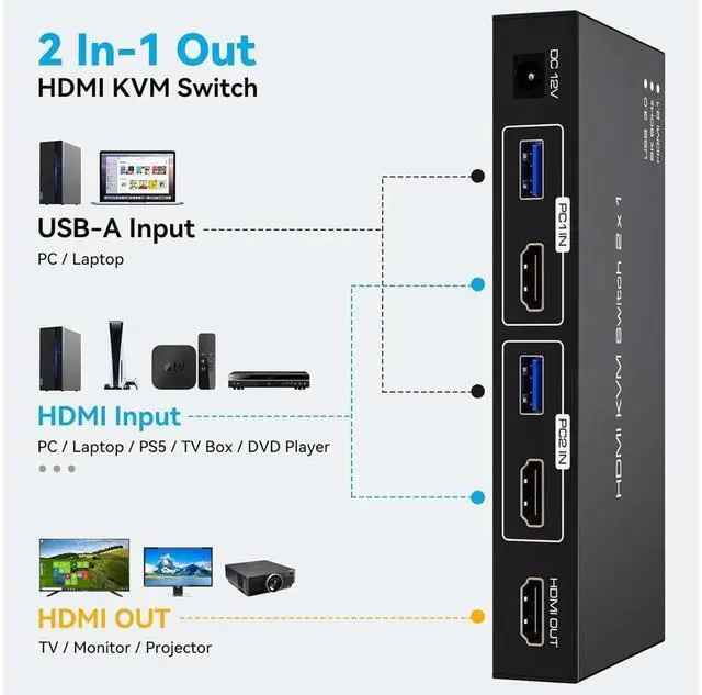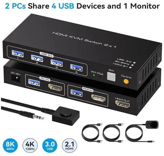 8K HDMI KVM switch 2 in 1 out for 2 computers sharing 1 monitor and keyboard and mouse