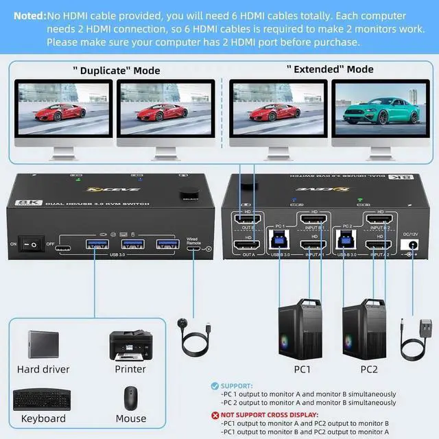 - Each computer needs 2 * HDMI cable+1 * USB 3.0 cable to connect KVM.