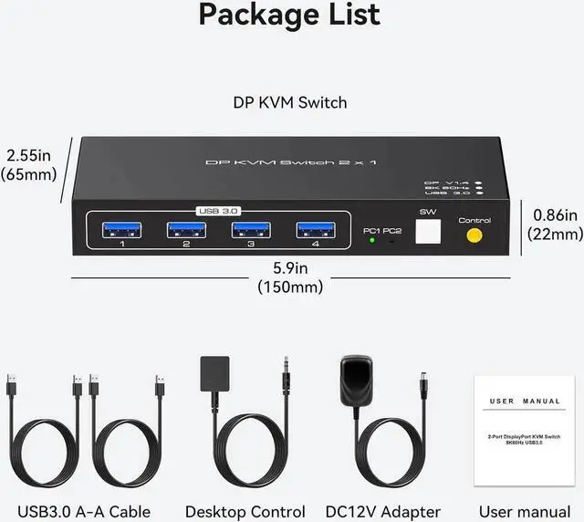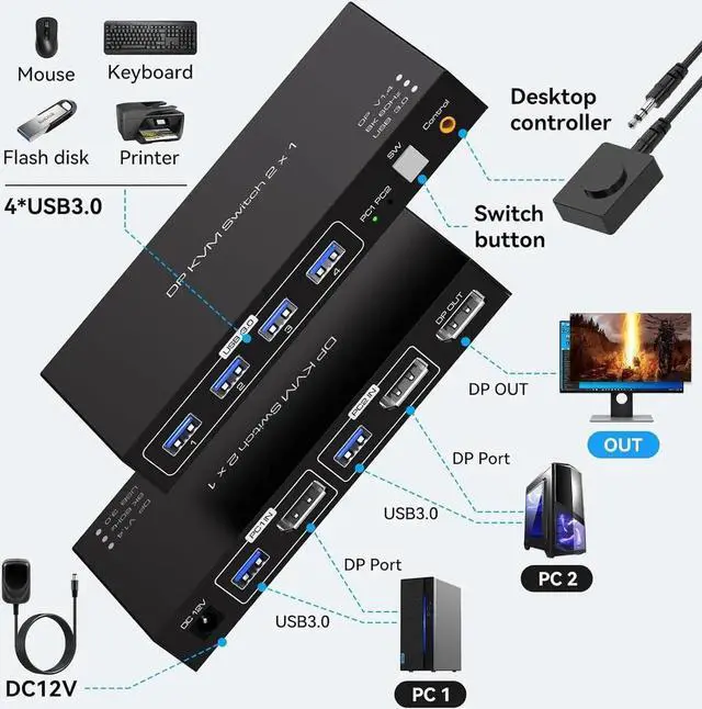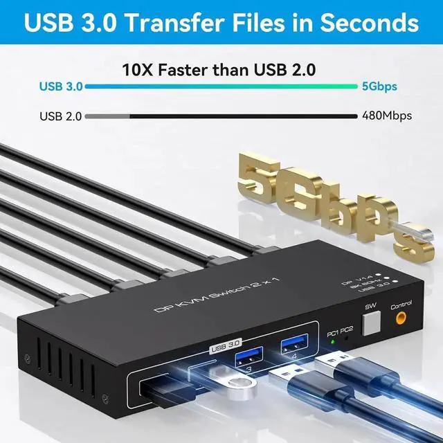 Perfect for sharing 4 USB 3.0 or USB 2.0 devices between two computers, the 4 Port USB 3.0 KVM Switcher makes your work easier and more efficient. Ideal for sharing a printer or scanner in an office environment.