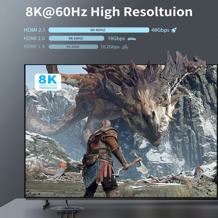 1. Support up to 8K 60HZ resolution with backward compatibility with lower resolution.