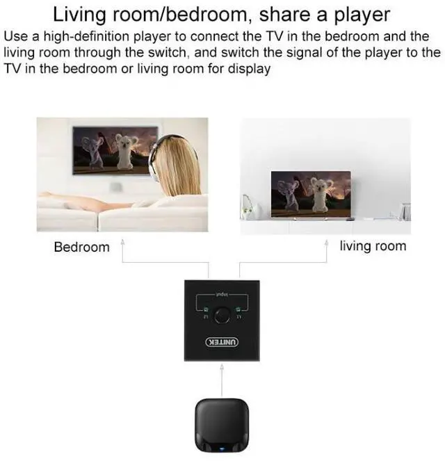 2. Two modes, two-way conversion, connect 2 devices at the same time, share a display