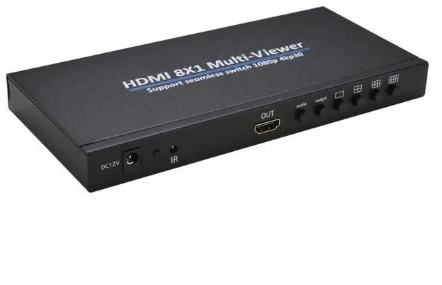 HDMI 8x1 Quad Multi-viewer is a high performance with 8 HD screen segmentation and seamless switching output switch. It can display 8HD digital video signal on the same screen, and has a variety of video segmentation, seamless switching 8 HD input signal synchronously. The control methods of the switch is flexible, it can be switched via button and IR control. Its a very practical and stable switch and easy to install, can be used in the major projects, meeting halls and other places.