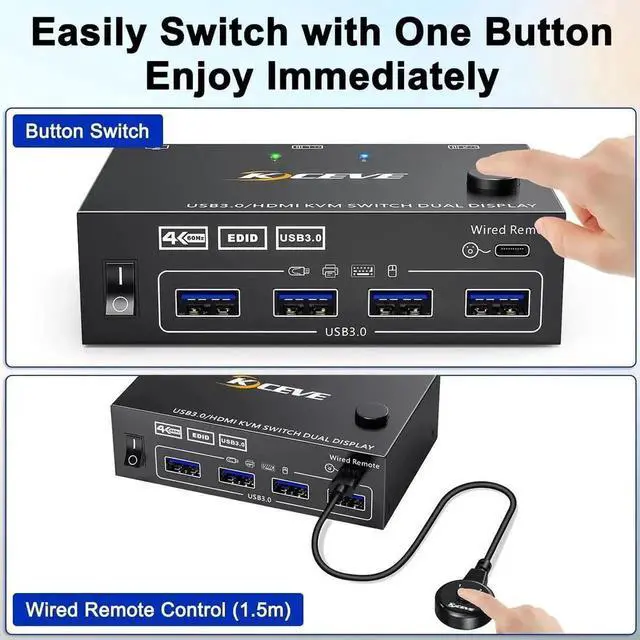 Maximum Resolution This KVM switch supports 4K@60Hz and 4K@30Hz, 2560x1440@120Hz, 1920x1080@240Hz and HDR video output, creating exquisite and realistic image display with bright and truthful colors, providing you with a visual feast.