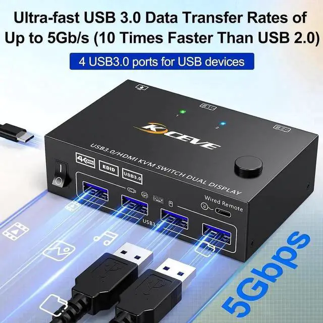 USB 3.0 KVM Switch Wide Compatibility: The 2-port HDMI KVM Switch 2 monitors is compatible with laptops, desktops and most operating systems such as Windows, Mac OS, Chrome OS etc. This KVM switch is widely used for home, office, server room, teaching, games, etc.