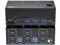 This triple monitor KVM switch perfect for hooking up 2 desktops to share one set of keyboard mouse and 3 monitors (supports extended and mirrored display modes).