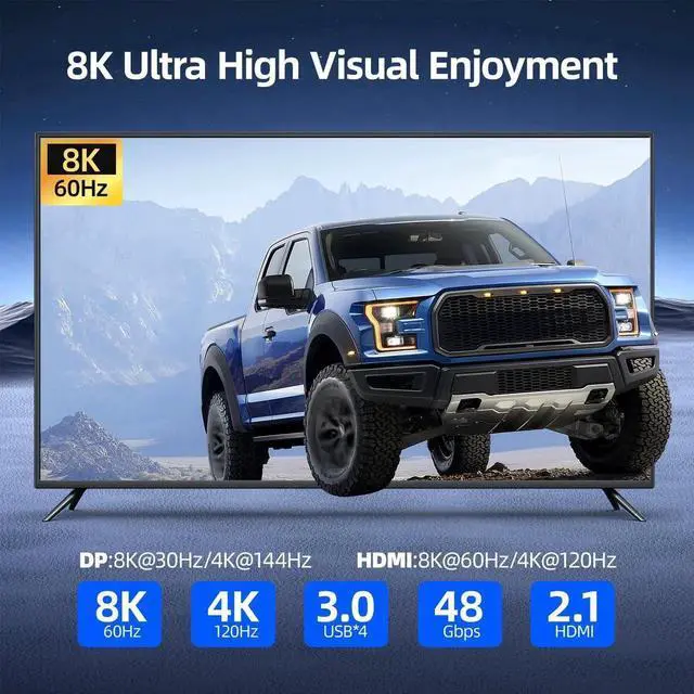 [Ultra HD 8K Visual Effect]This HDMI Displayport KVM switch 3 port supports Ultra HD resolutions up to 8K@60Hz, with backward compatibility for 4K@144Hz, 4K@120Hz, and 1080P@240Hzdelivering stunning visuals with lifelike imagery and vibrant colors. (Note:To achieve the highest resolution, ensure that the signal source, HDMI cable, and DP cable all support 8K@60Hz )