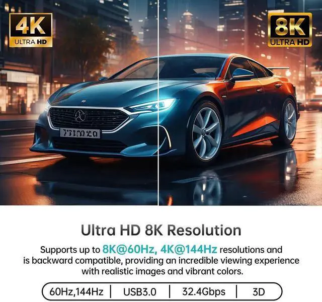 MT-VIKI 8K Displayport KVM Switch 4 in 1 Out DP 1.4 with 4 USB 3.0 Ports, Support 8K@60Hz 4K@144Hz Share 1 Monitor Keyboard Mouse U-Disk Printer, with 4 USB A to C Cables