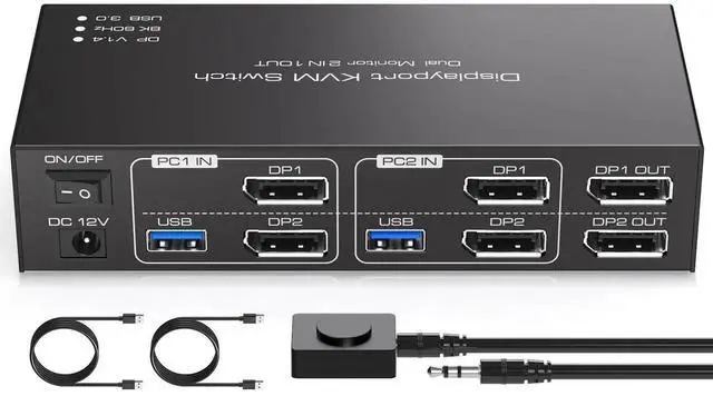TJCXELE Displayport KVM Switch 2 Monitors 2 Computers 8K@60Hz/4K@120Hz USB 3.0 DP 1.4 KVM Switch for Two Computers Share Dual Displays and 4 USB Devices Support Extended & Copy Mode