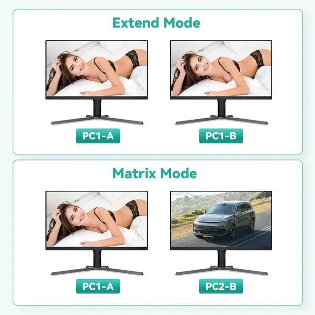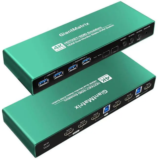 HDMI kvm Switch 2 Monitors 2 Computers edid Emulator 2k 144hz Hotkey Switching Extended Display PC Switch 2 Monitors 2 Computers hdmi edid Clone 2k 144hz Matrix kvm Cross Display USB 3.0