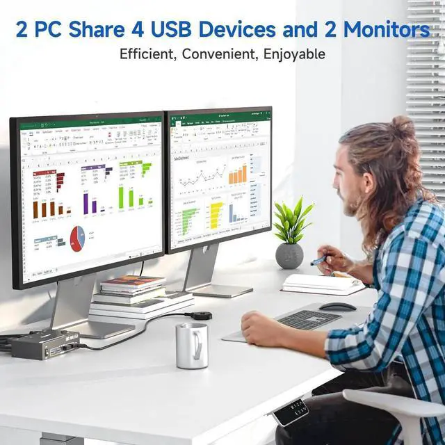 KVM Switch 2 Monitors 2 Computers 4K@144Hz 8K@60Hz, HDMI Displayport Dual Monitor KVM Switch for 2 PC Share 2 Monitors Keyboard Mouse Printer, Wired Remote, Power Adapter and USB Cable Included