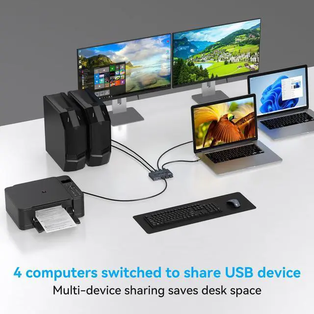Wide CompatibilityUSB switch selector is plug and play, no driver required, widely compatible with multiple systems, support Windows XP/ Vista/ 7/ 8/ 8.1/ 10/ 11, Linux, and Mac and other operating systems. Compatible with kinds of USB devices such as: keyboard,mouse,printer,scanner,all-in-one machine,camera,Hard drive