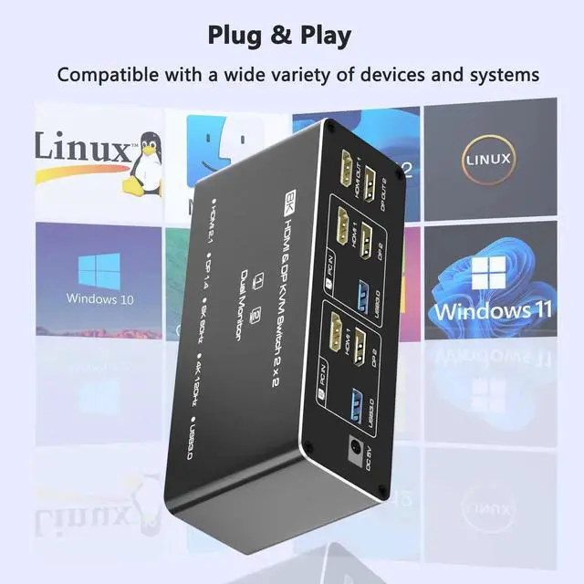 [Two Easy Switching Methods]Press the KVMs button or use the included desktop controller (LED indicators show active PC). Works with Windows, macOS, Linux, and Unix. No keyboard hotkeysphysical switching only