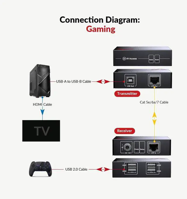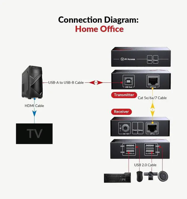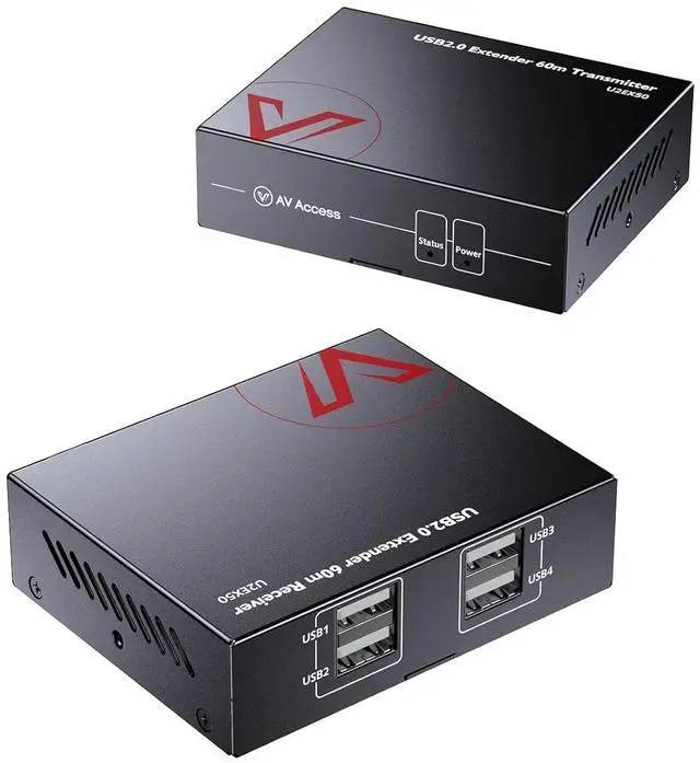 AV Access USB Extender Over Cat5e/6 196ft/60M, 4 USB 2.0 Ports, Plug and Play, No Driver, Supports All Operating System, Two Webcams Work Synchronously, Keyboard and Mouse Over Ethernet