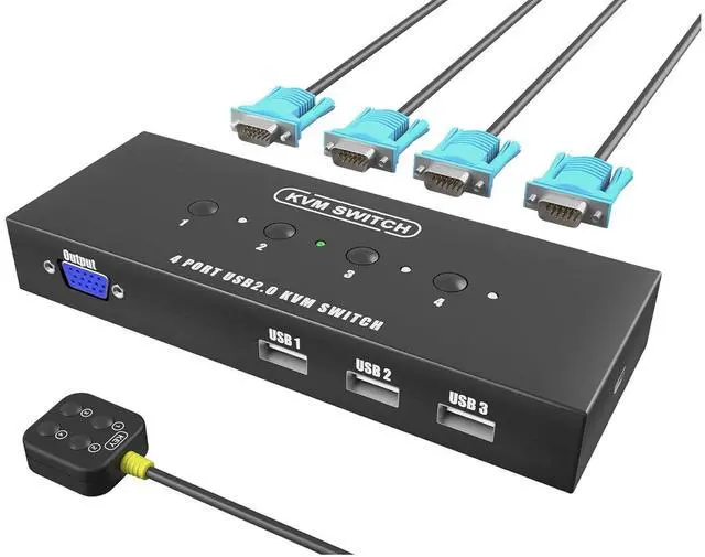 Convenient Switching: Easily switch between connected computers using the included remote control or push buttons on the unit.