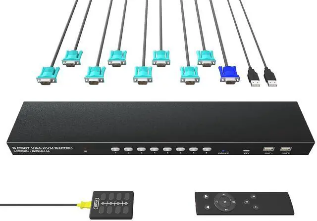Inclusive Package: Includes 8 HDMI KVM cables, a remote control, and the KVM switch unit for a complete out-of-the-box solution.