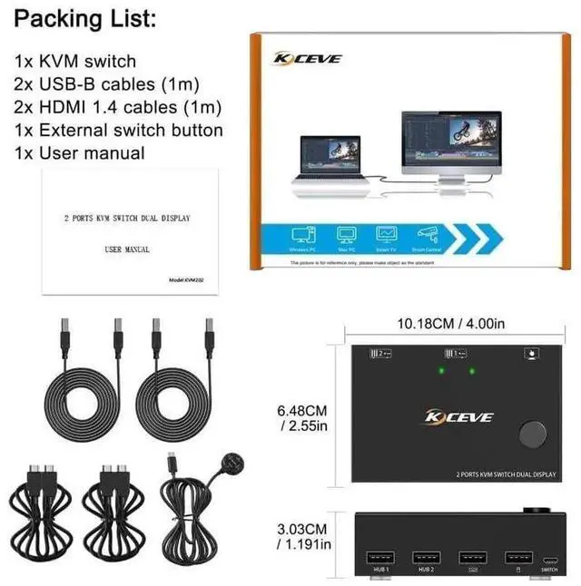 • [KVM Switch 2 Monitors with 4 USB Ports] Dual monitor KVM switch is suitable for 2 computers to share 2 monitors and 4 USB devices without unplugging the power, and securely recognizes keyboards, mice, printers, scanners and other USB devices