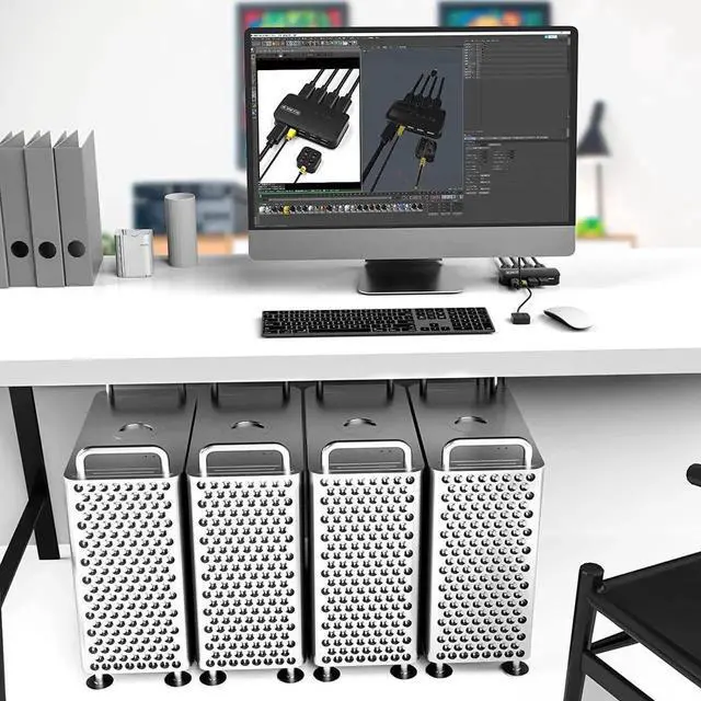 4 IN 1 OUT KVM SWITCH HDMI- to control your 4 computers by desktop controller or 4 buttons from KVM switch. Through this product with 3 ports front USB hub, 4 computer hosts or other signal sources can share 1 set of monitor, keyboard, mouse or U disk etc.