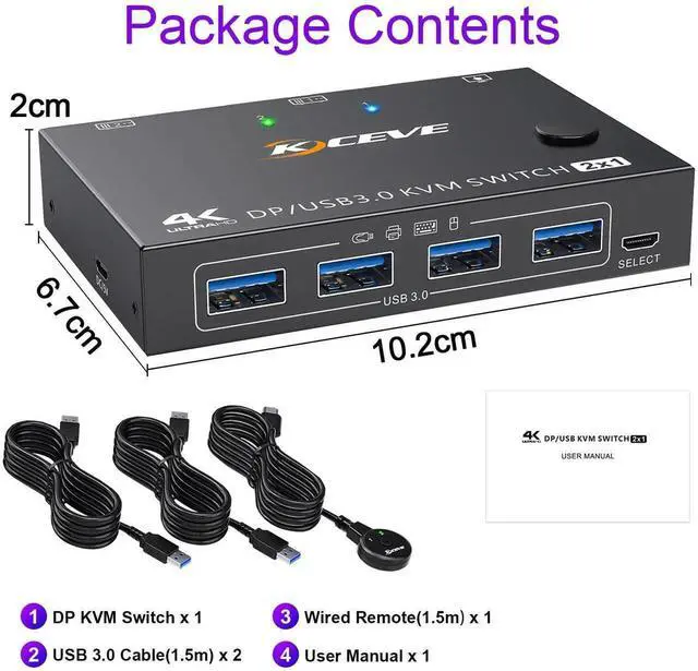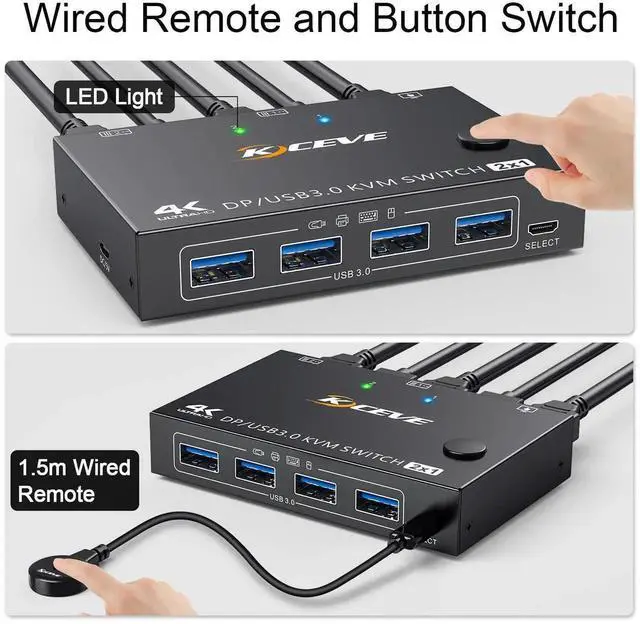 Displayport KVM Switch 2 Computers 1 Monitor Share 4 USB Devices