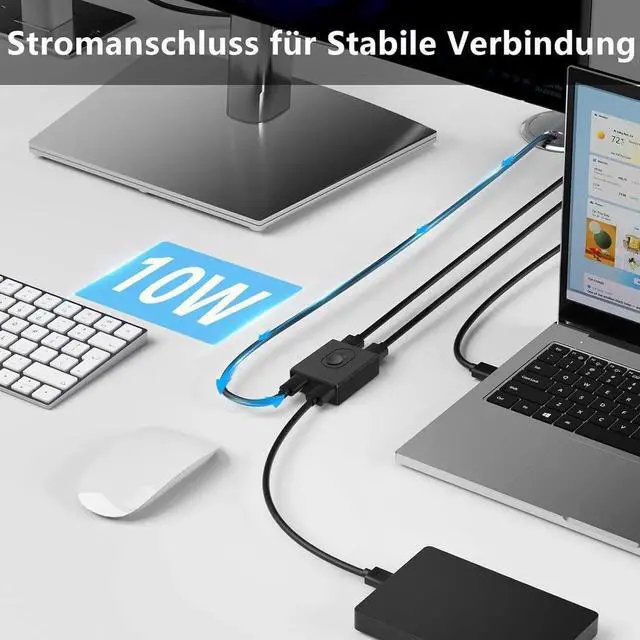 10 W power connection: the USB switch comes with a 10 W micro USB port and a 1 m long micro USB cable. When connecting USB hubs and powerful devices, it is recommended to connect the included 10W port, so that the USB switch can achieve more stable and uninterrupted data transmission. (Note: There is a 3.3 ft power cord, the power supply is not included. )
