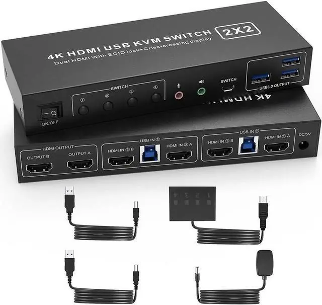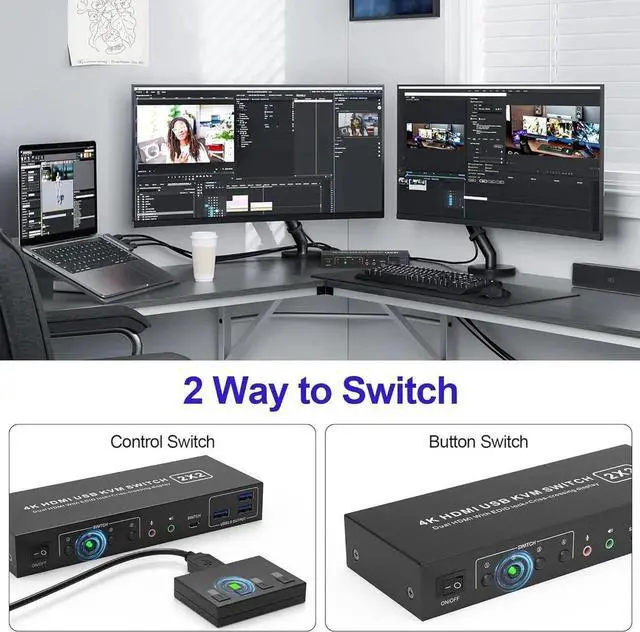 Dual Monitor KVM Switch: Ideal for access 2 PC with 2 monitors and 1 set of keyboard mouse. You can easily have a dual monitor setup per system or switch it to a single monitor system showing both systems.