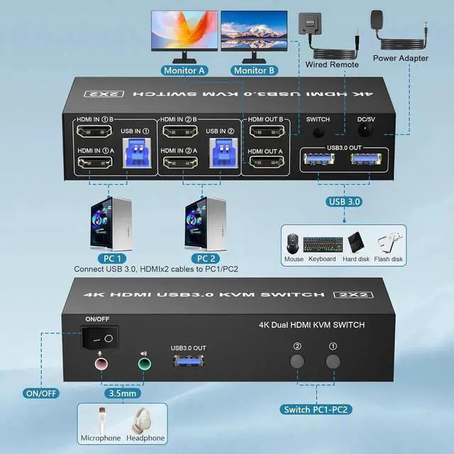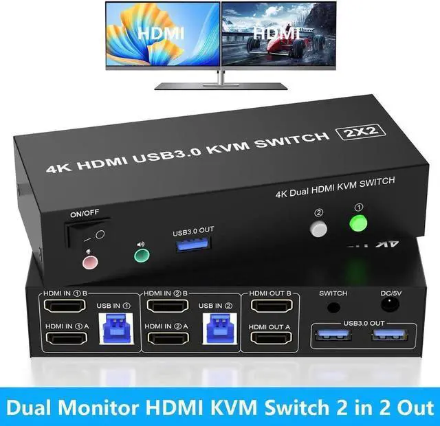 Dual Monitor KVM Switch Support Ultra HD 4K Visuals