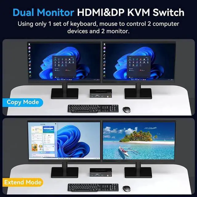 KVM Switch HDMI+DP 2 monitors 2 computers supports 2 modes
