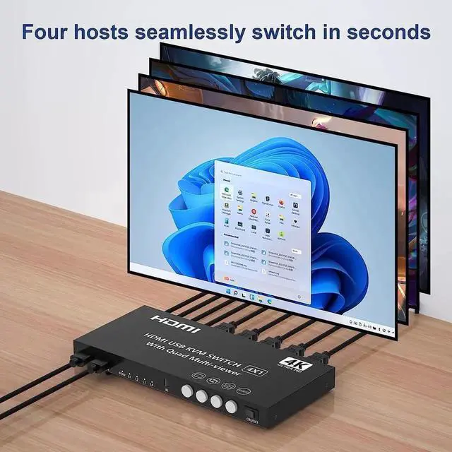 [HDMI 4x1 Multi-viewer] The Switch supports 4 HDMI input sources to a single display, allowing you to view single source, 2 sources or all 4 sources at the same time on the screen. It is perfect for hooking up 4 desktops or laptops with just 1 set of keyboard, mouse and 1 monitor for home and office setup, gaming consoles and streaming devices.
