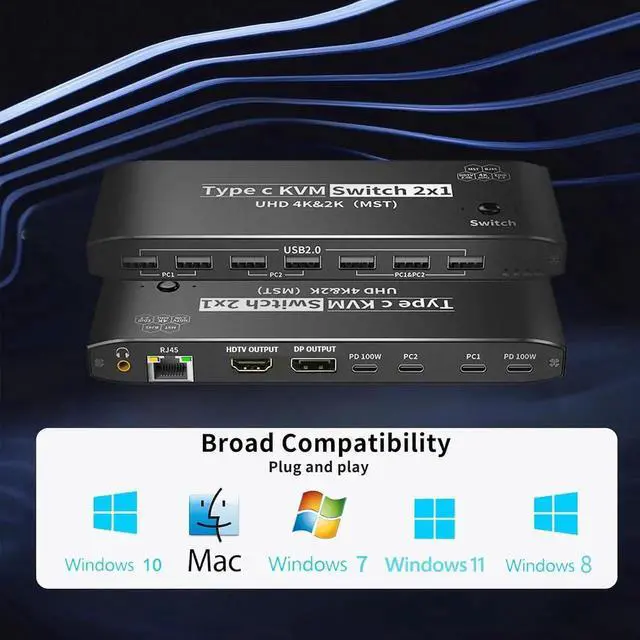 8K Type-C KVM Switch 1 Monitors 2 Computers