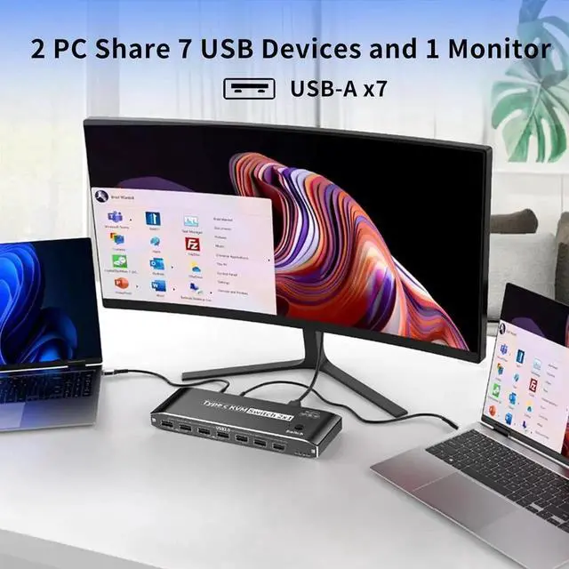 2 PCs Share 7 USB Devices and 1 Monitor, Simplify Your Setup and Enhance Your Productivity.