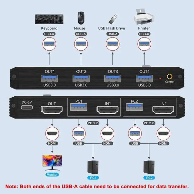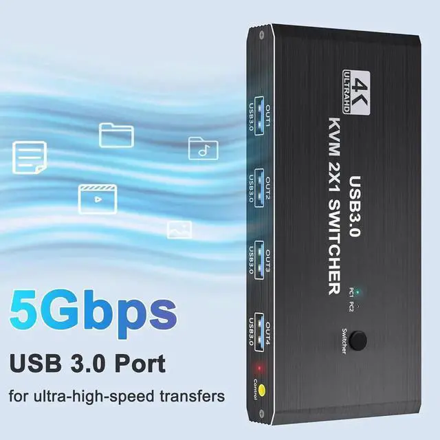 4 USB 3.0 Ports: Featuring 4 USB 3.0 ports and data transfer speeds of up to 5Gbps, the KVM switch allows you to seamlessly share peripheral devices such as printers and external hard drives between two computers, reducing clutter and increasing efficiency.