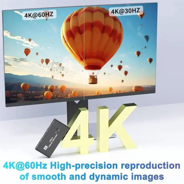 4K@60HZ ResolutionThe HDMI KVM Switch supports stunning 4K@60HZ resolution, ensuring crystal-clear, highly detailed visuals on your display. In addition, it supports 4K@30Hz, 2K, 3D and 1080P for flexibility in meeting various display needs. This ensures superior image quality and a smooth, secure multimedia experience. (Note: Please use a 4K@60Hz compliant HDMI cable, HDMI cable is not included in the package.)
