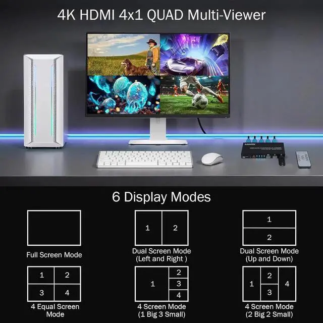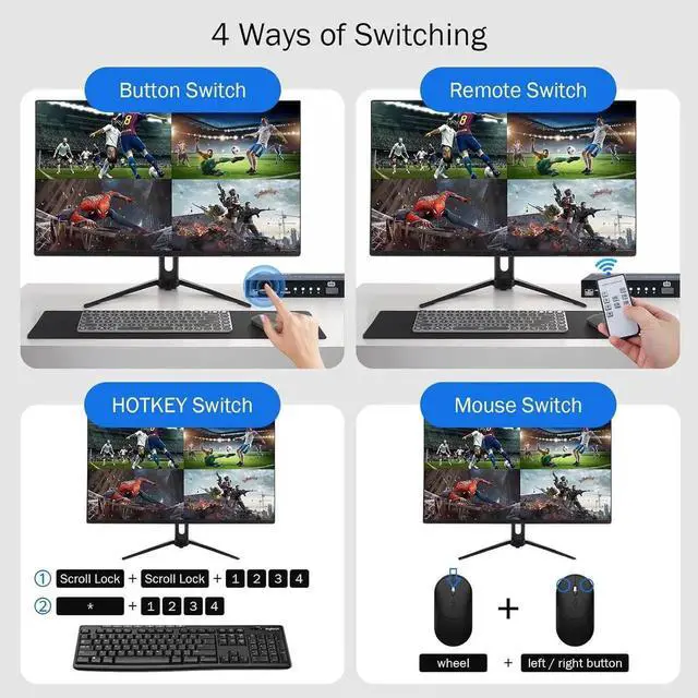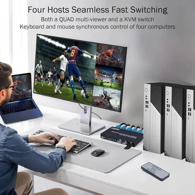 Follow the above hotkey to choose which computer that the USB devices is controlling when multi HDMI sources showing on 1 monitor.