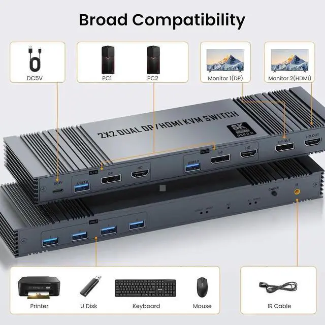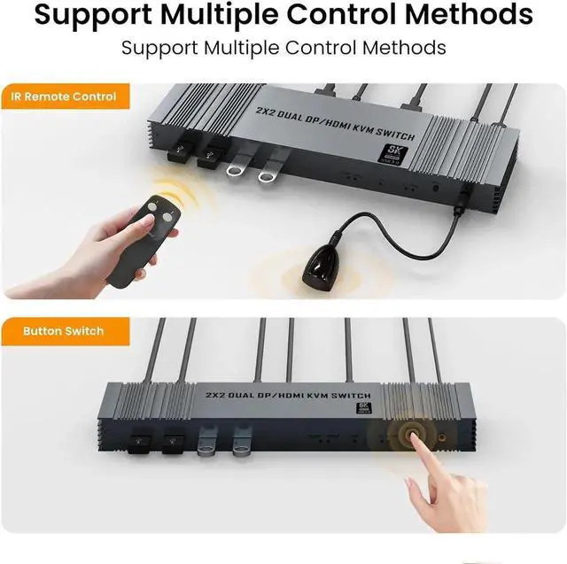 - Product Type: 8K HDMI DP USB 3.0 KVM Switch (2 in 2 out)