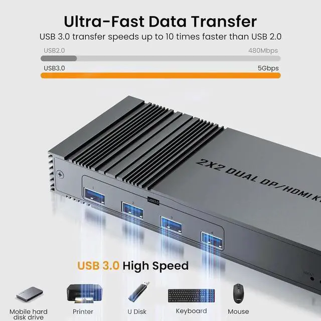 HDMI Display port DP KVM Switch 2 Port Dual Monitor Extended Display, UHD 4K@120Hz