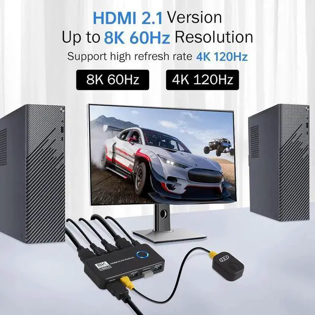 Hitoor 2 Port HDMI KVM Switch, 8K@60Hz 4K@120Hz HDMI USB 3.0 KVM Switch for 2 Computer Share 1 HD Monitor and 3 USB 3.0 Devices, Included Wired Remote, 2 HD-MI 2.1 Cables and 2 USB 3.0 Cables giyqxHw