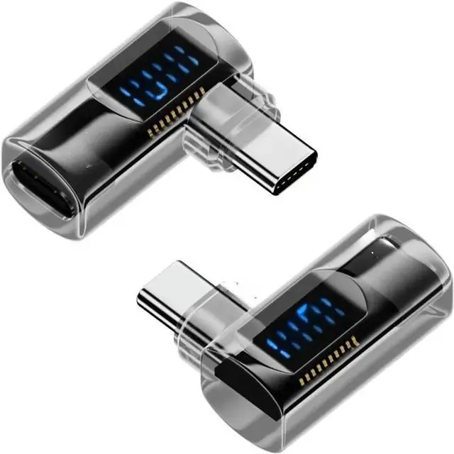 • FOR 2 Pack 90 Degree USB C Adapter with Display, 140W Right Angle USB-C Male to Female Connector for 16/15 Series