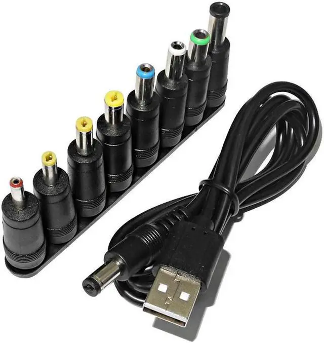 Universal Power Cable USB to DC 5.5 * 2.1 mm Jack 5V Charging Cord with 8 Selectable Connector Tips for CCTV Cameras TV Box
